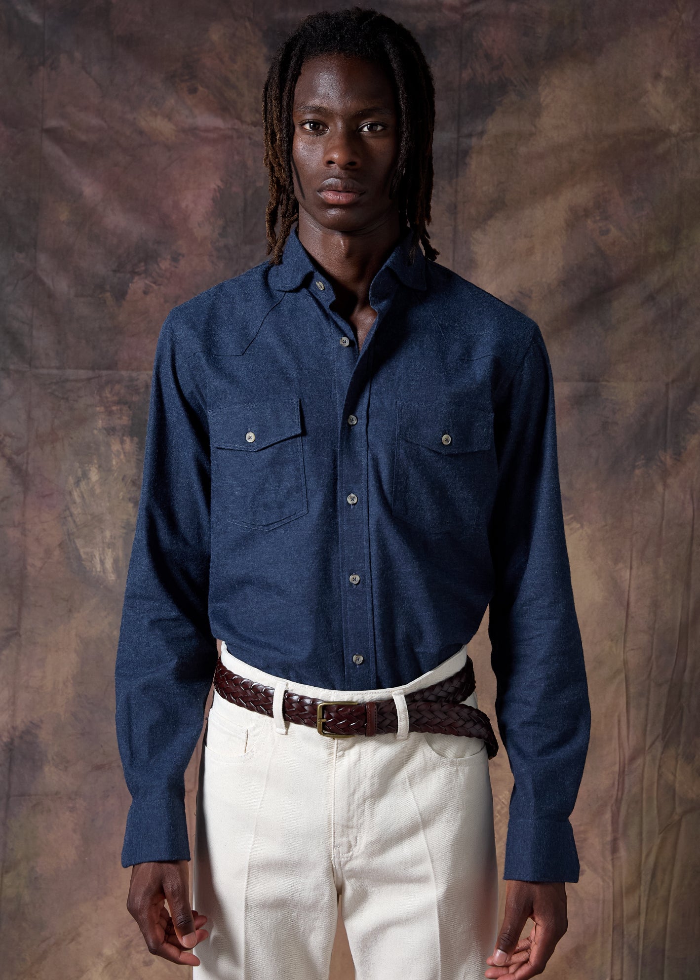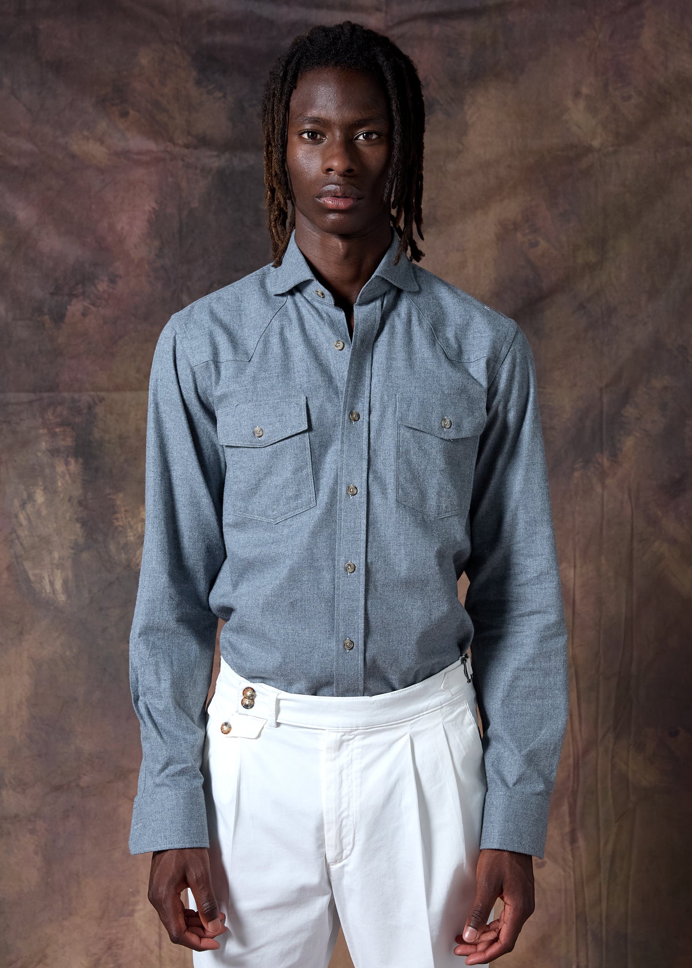 CAMISA MIL RAYAS ALGODÓN CELESTE