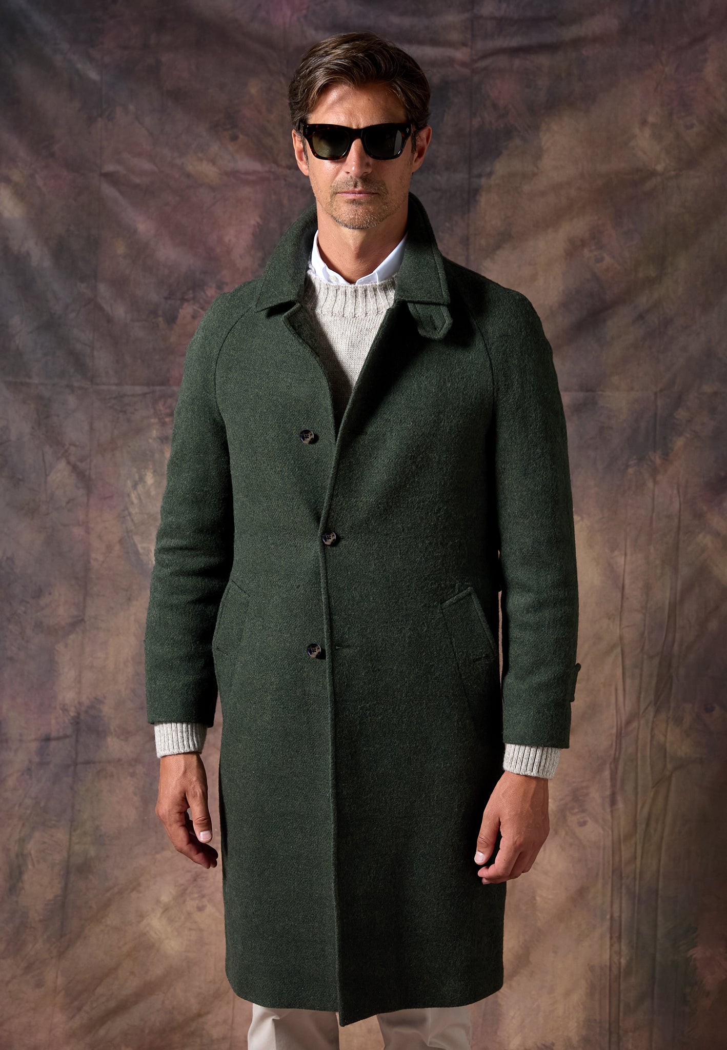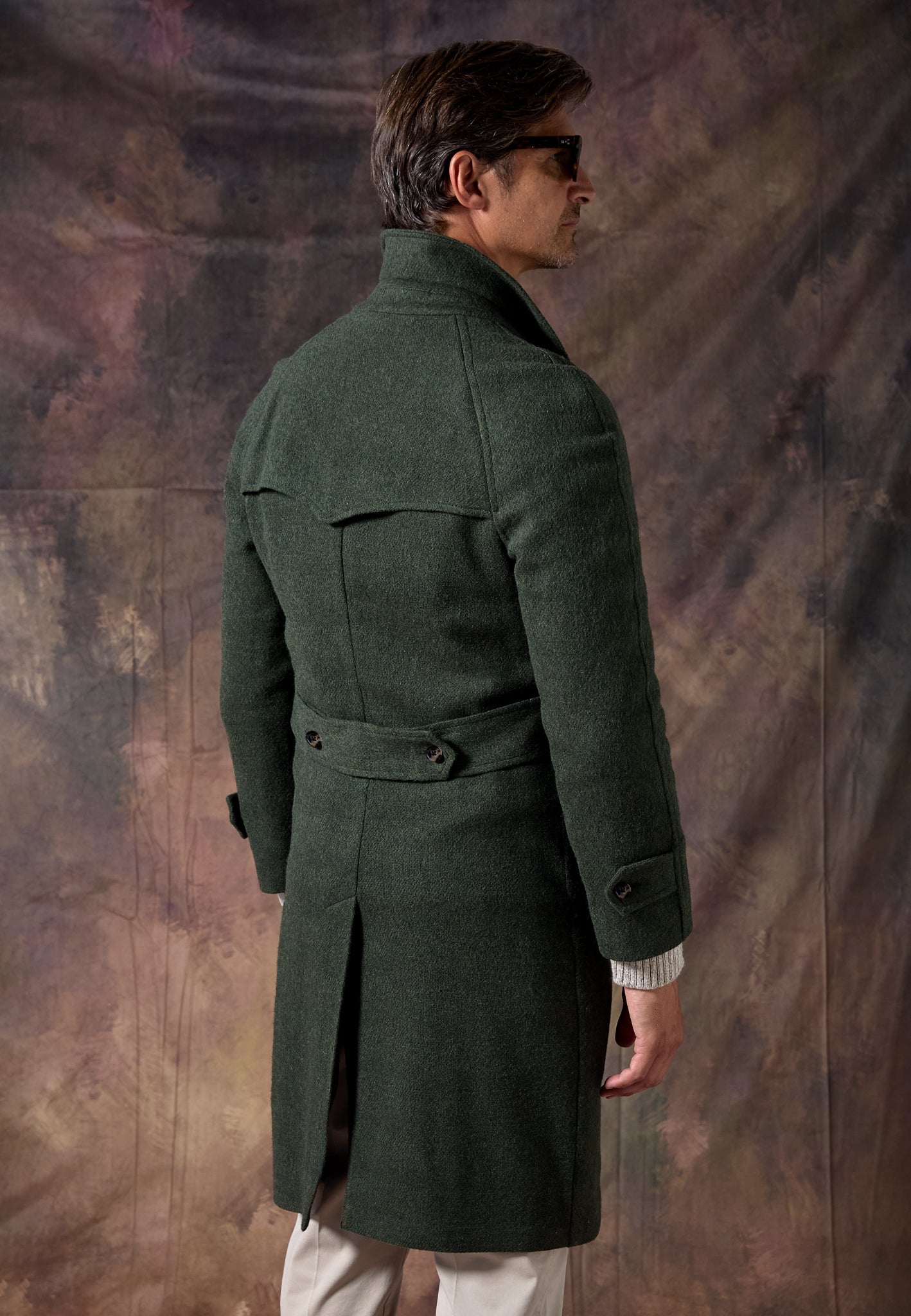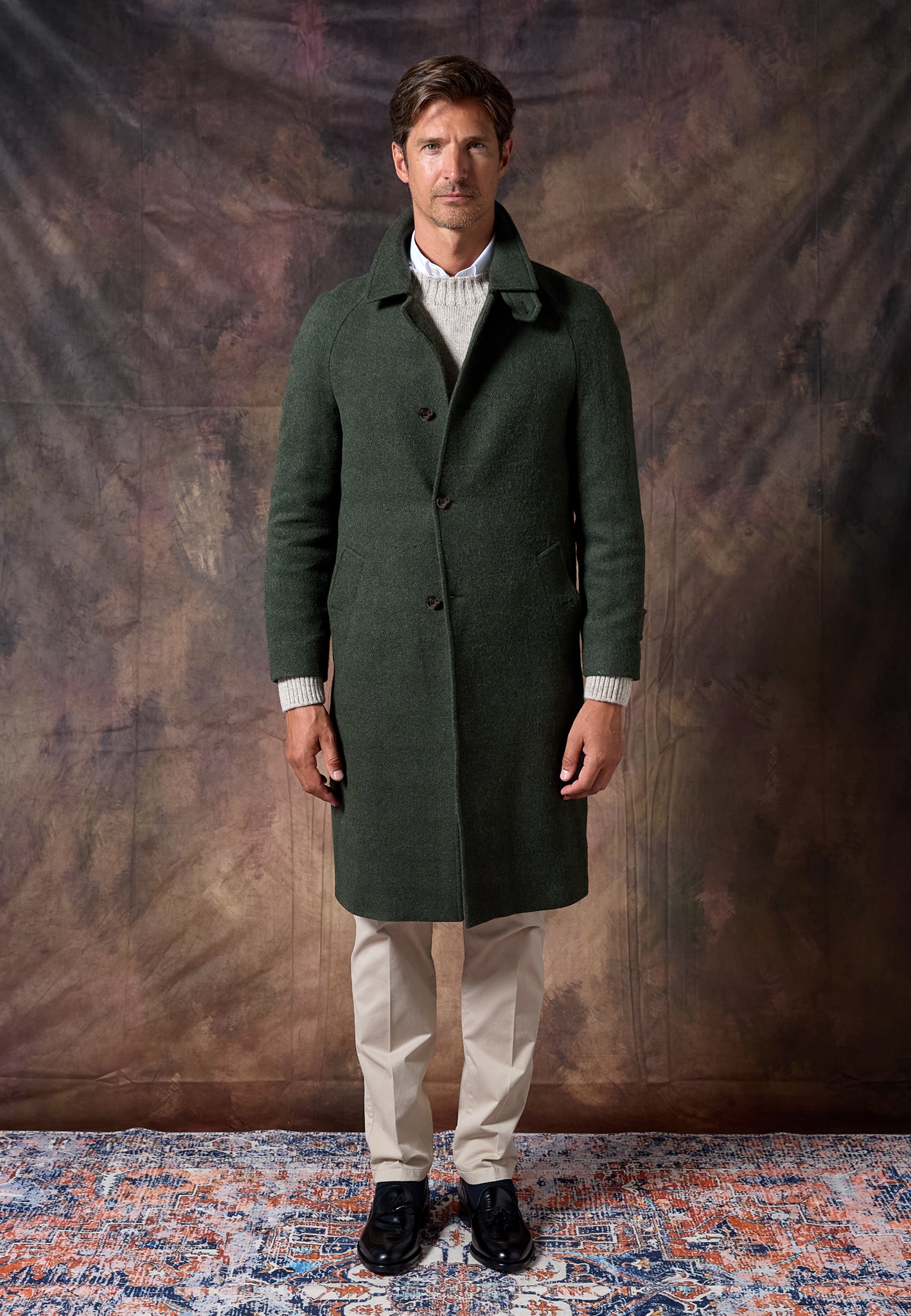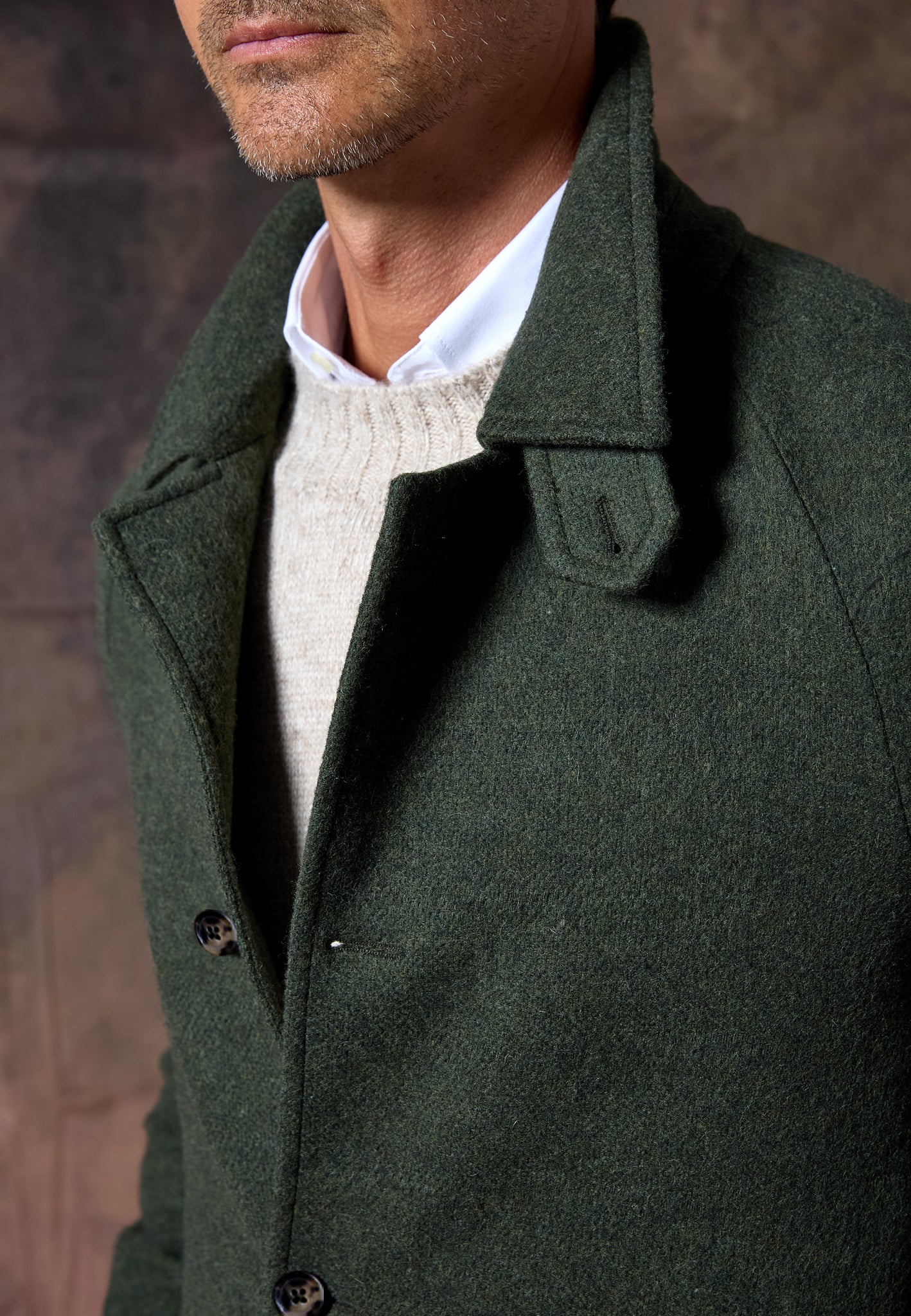 Versátil y atemporal, el Abrigo Loden Kaki se adapta a cualquier ocasión: del día a la noche, con capas finas o como capa final sobre sastrería.