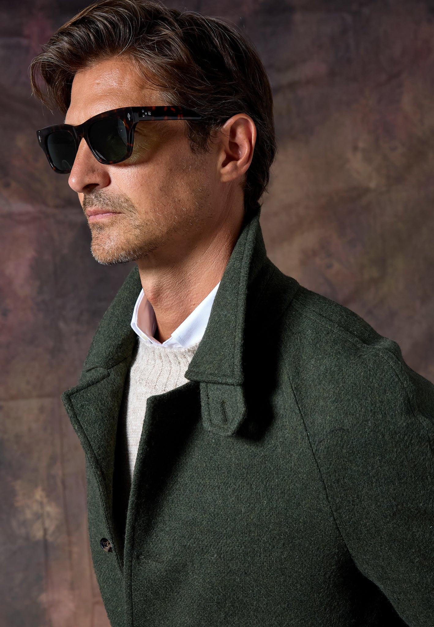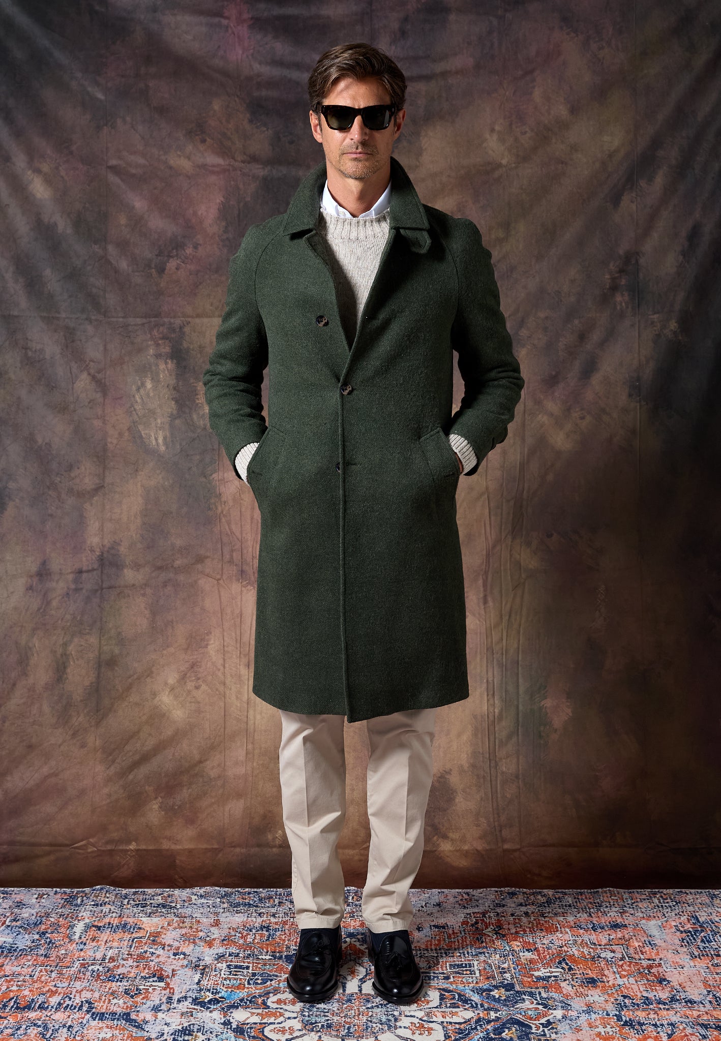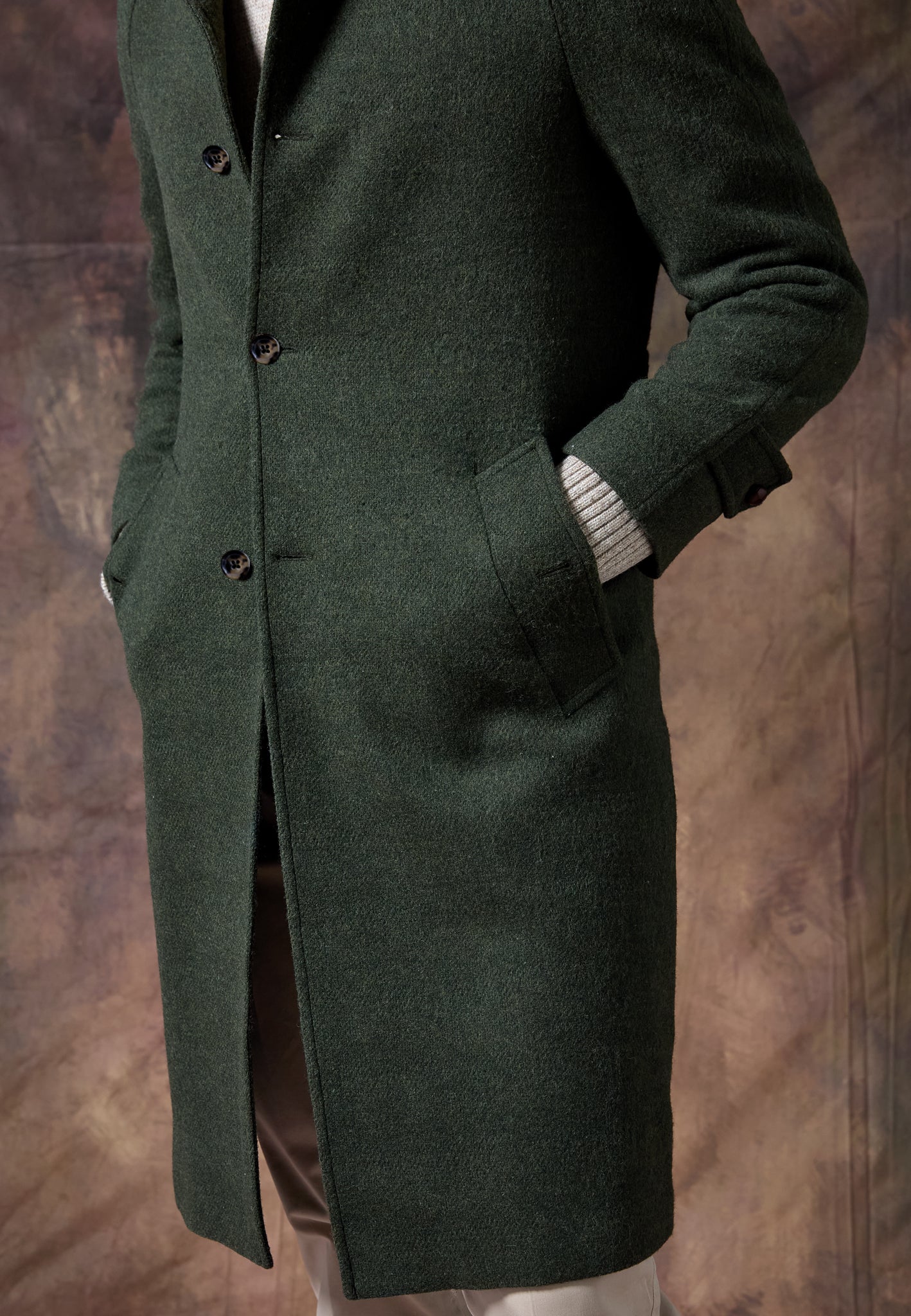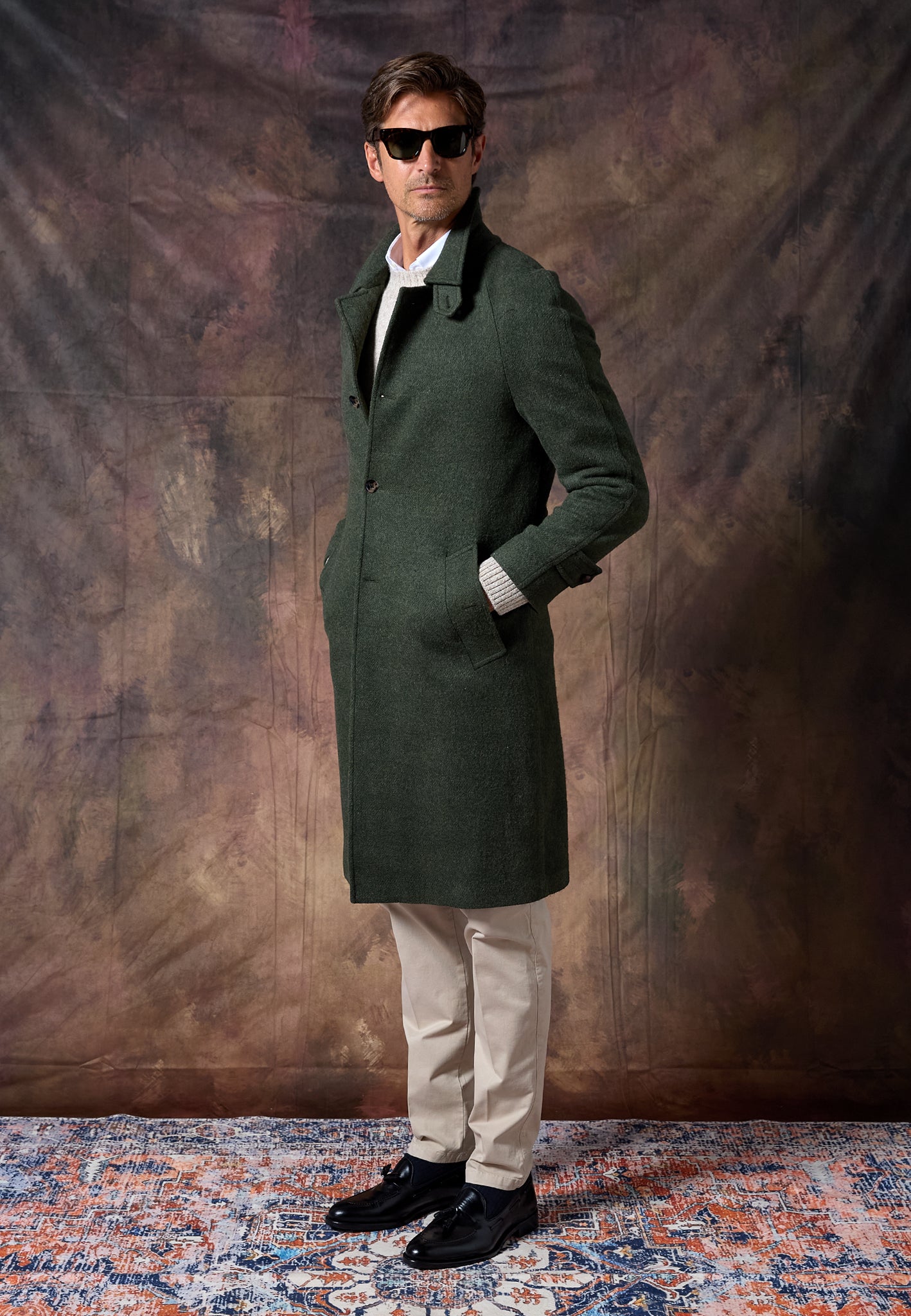 Versátil y atemporal, el Abrigo Loden Kaki se adapta a cualquier ocasión: del día a la noche, con capas finas o como capa final sobre sastrería.