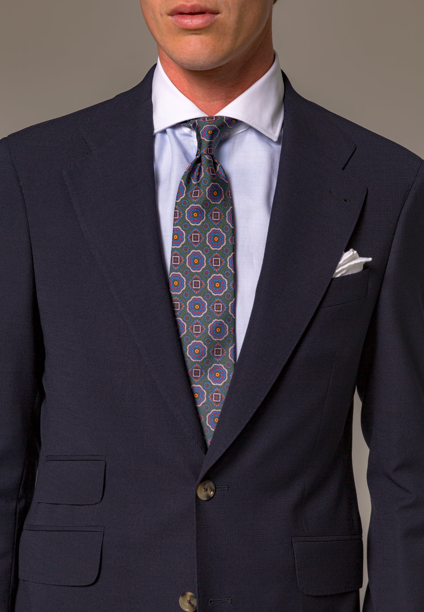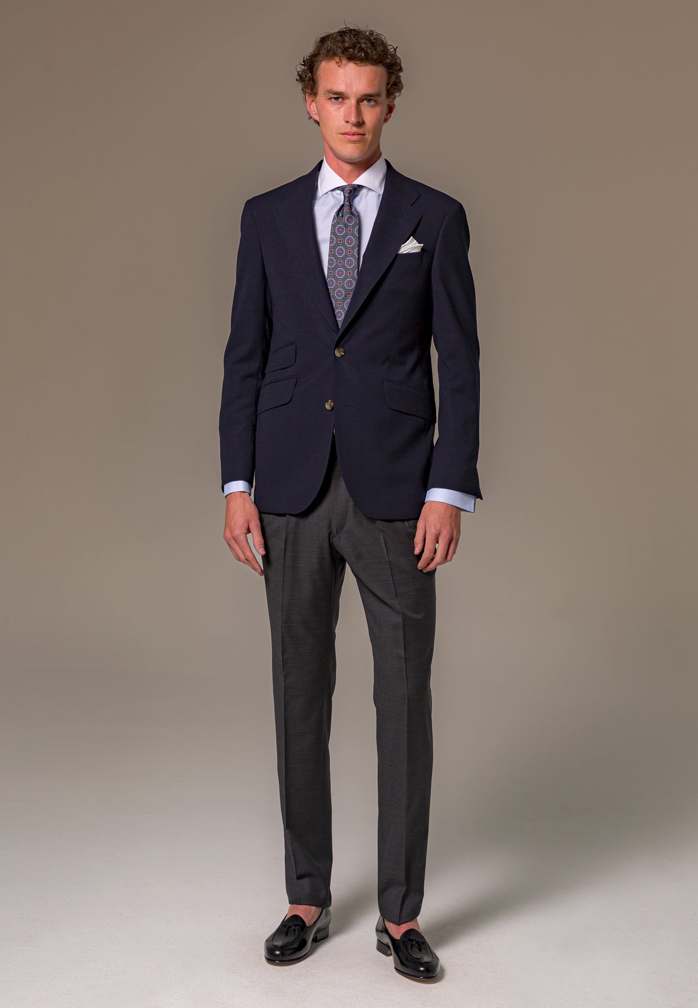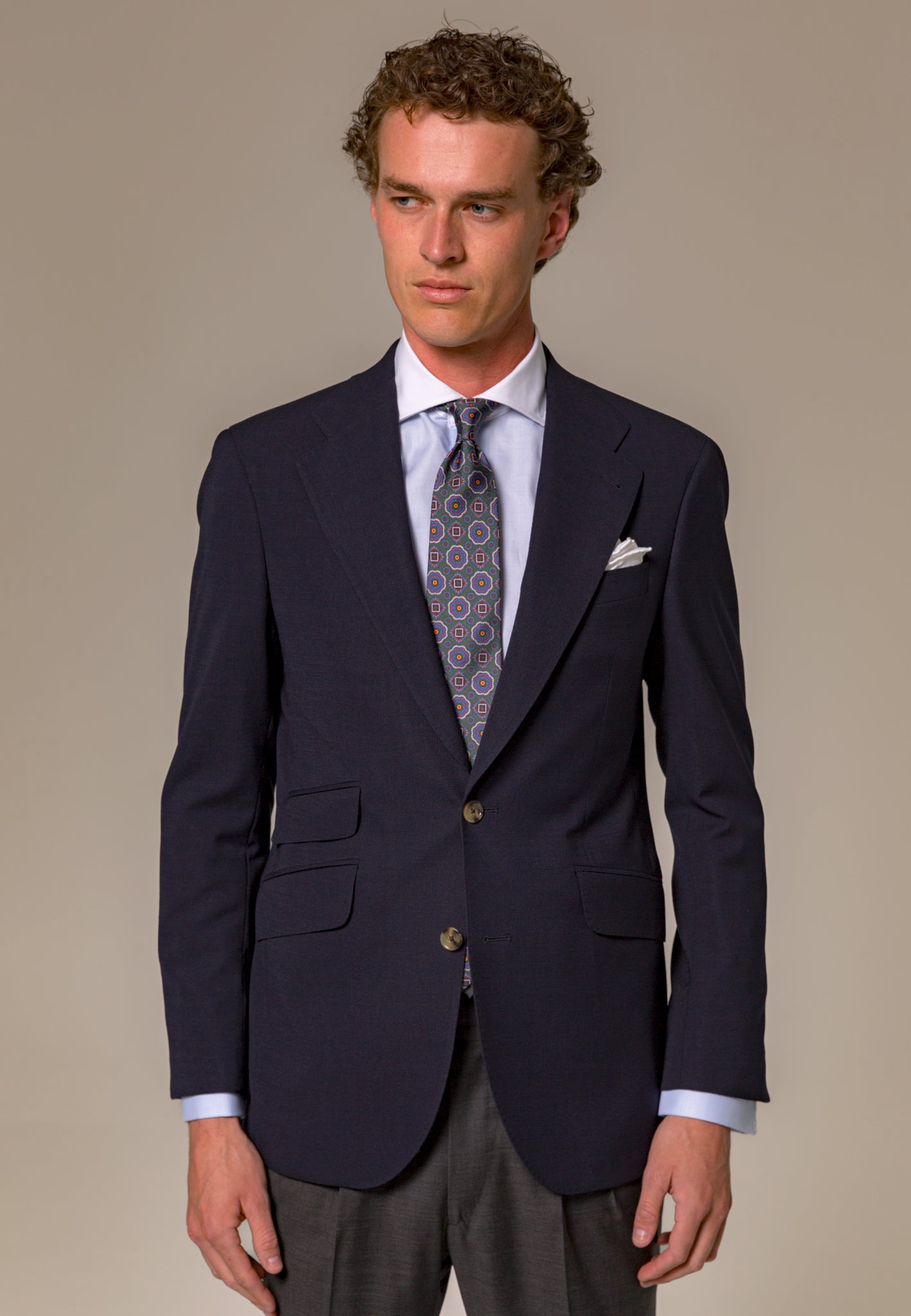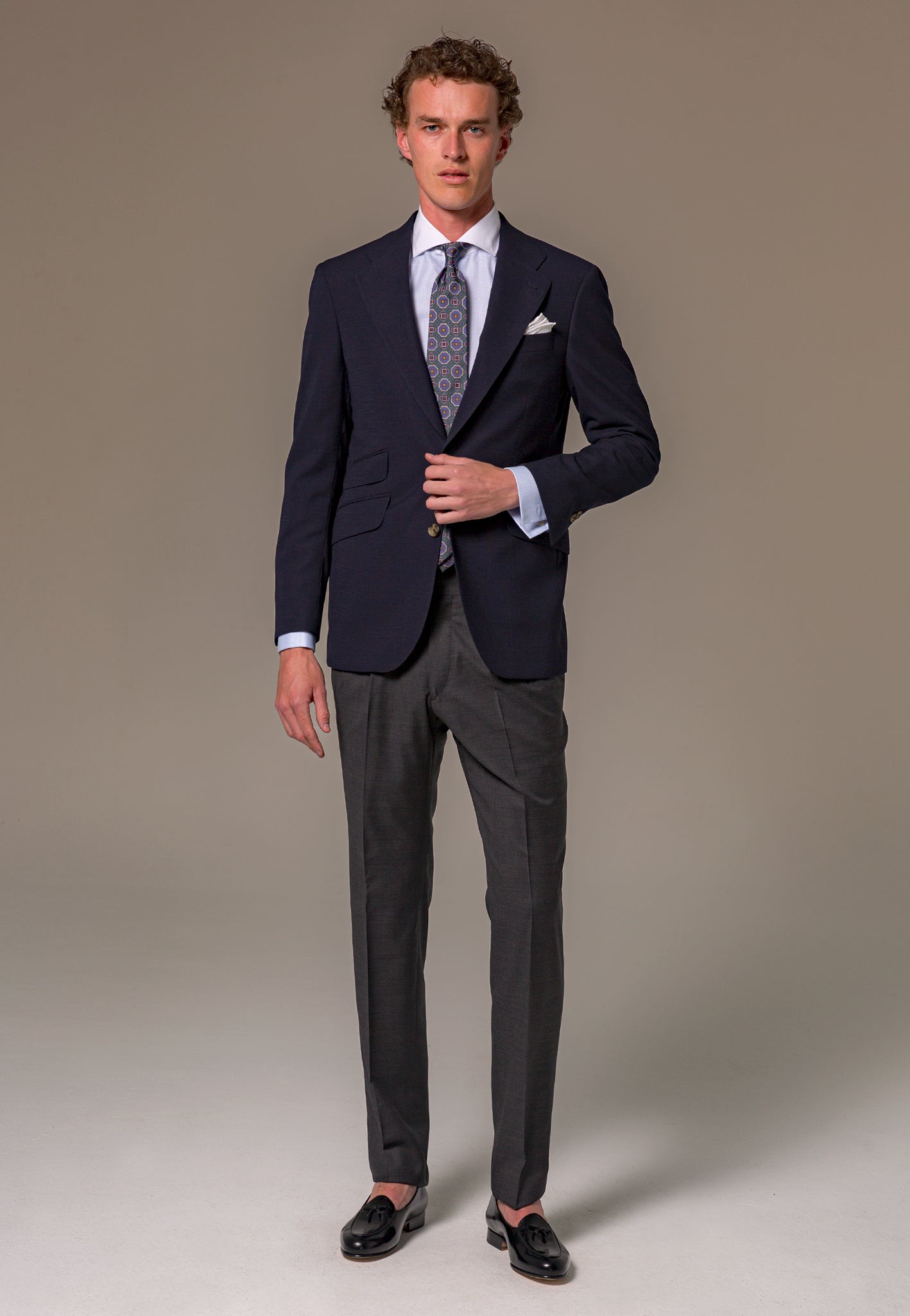 La Americana Azul confeccionada con 100% lana italiana de la prestigiosa casa Marzotto es el equilibrio perfecto entre elegancia y estilo atemporal. Esta prenda es un básico imprescindible que todo hombre debe tener en su armario. Su diseño clásico con una ligera estructura en el tejido añade textura y distinción a cualquier look. Ideal para combinar con una amplia variedad de prendas, esta americana azul es una opción versátil que se adapta a diferentes ocasiones, desde eventos formales hasta un look casual-chic. Los pequeños detalles, como la solapa acabada en punta y el cerillero, son los que realmente marcan la diferencia.