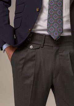 La Americana de fil a fil es una pieza esencial y atemporal, confeccionada con un tejido de sarga fabricado en 100% lana fría Super 110's de la prestigiosa casa italiana Marzotto.