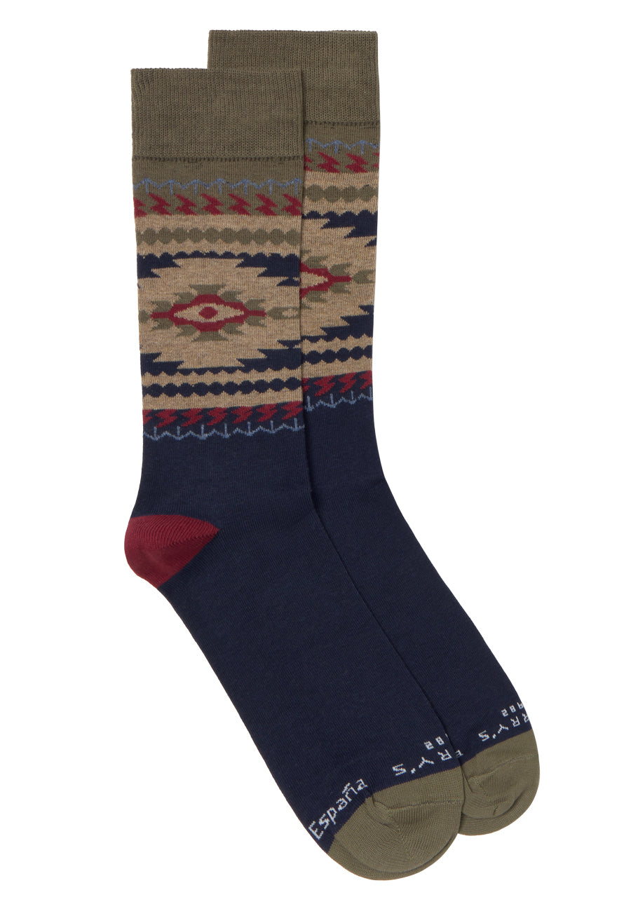 Pocas cosas elevarán tanto tu look como estos calcetines. La tonalidad oscura del marino de fondo resalta los alegres colores del diseño. Completa tus looks con estos calcetines originales. ¡No te quedes sin ellos!