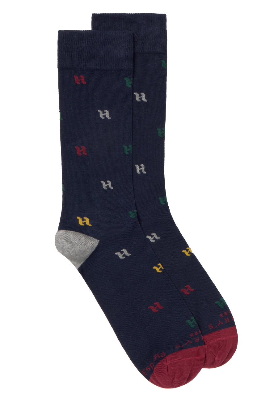 Pocas cosas elevarán tanto tu look como estos calcetines. La tonalidad oscura del marino de fondo resalta los alegres colores del diseño. Completa tus looks con estos calcetines originales. ¡No te quedes sin ellos!
