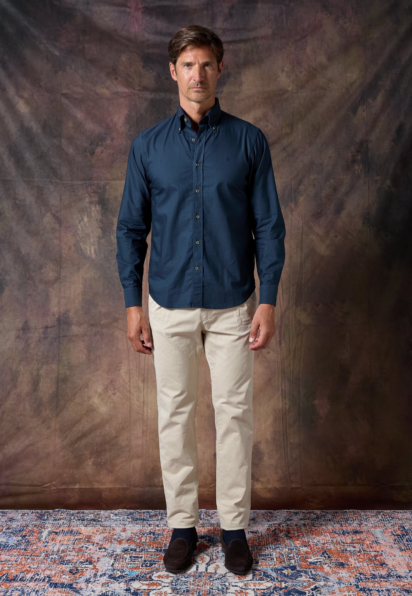 La camisa button down básica en tejido oxford es la prenda sport por excelencia, con todos los detalles y la calidad HARRY'S 1982 que te encantan. Confeccionada en España con 100% algodón italiano, esta camisa ofrece una textura suave y duradera, perfecta para cualquier ocasión casual.