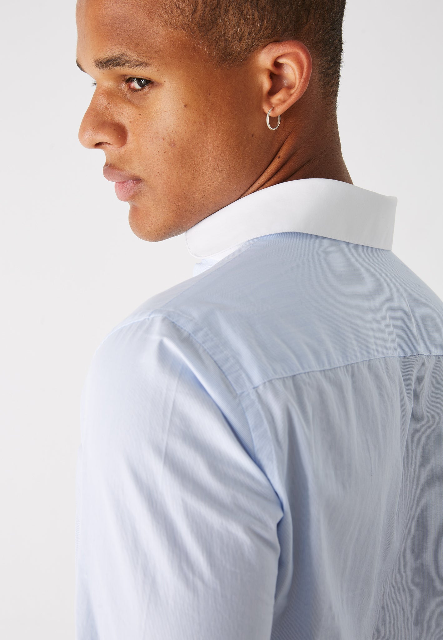 La Camisa London Celeste es la prenda sport ideal que combina comodidad y elegancia con un diseño único.