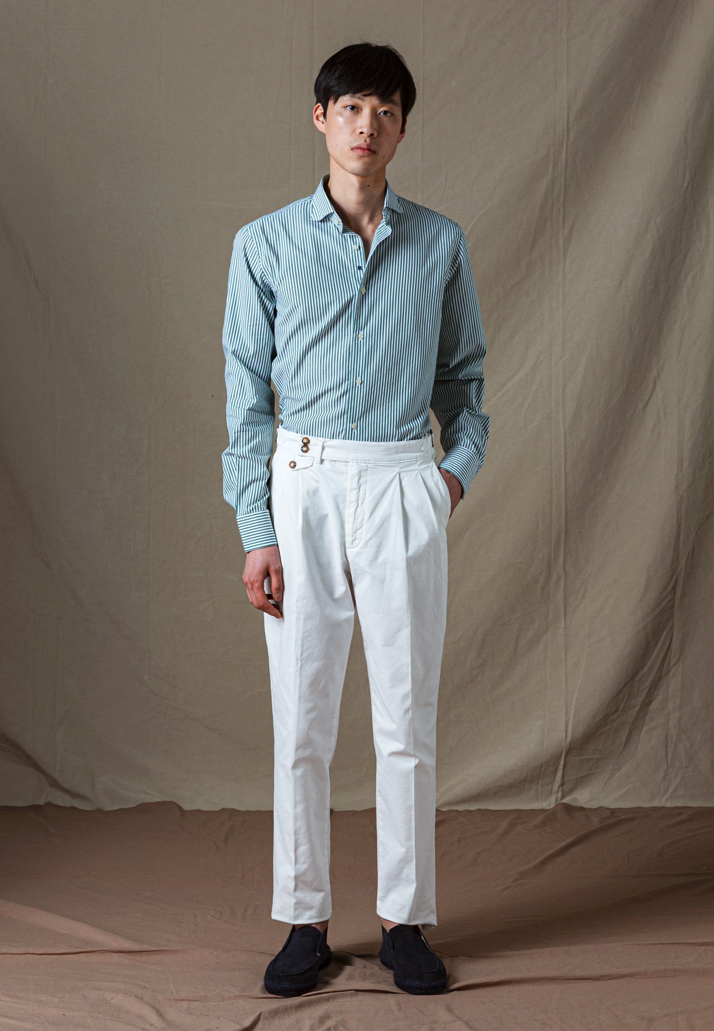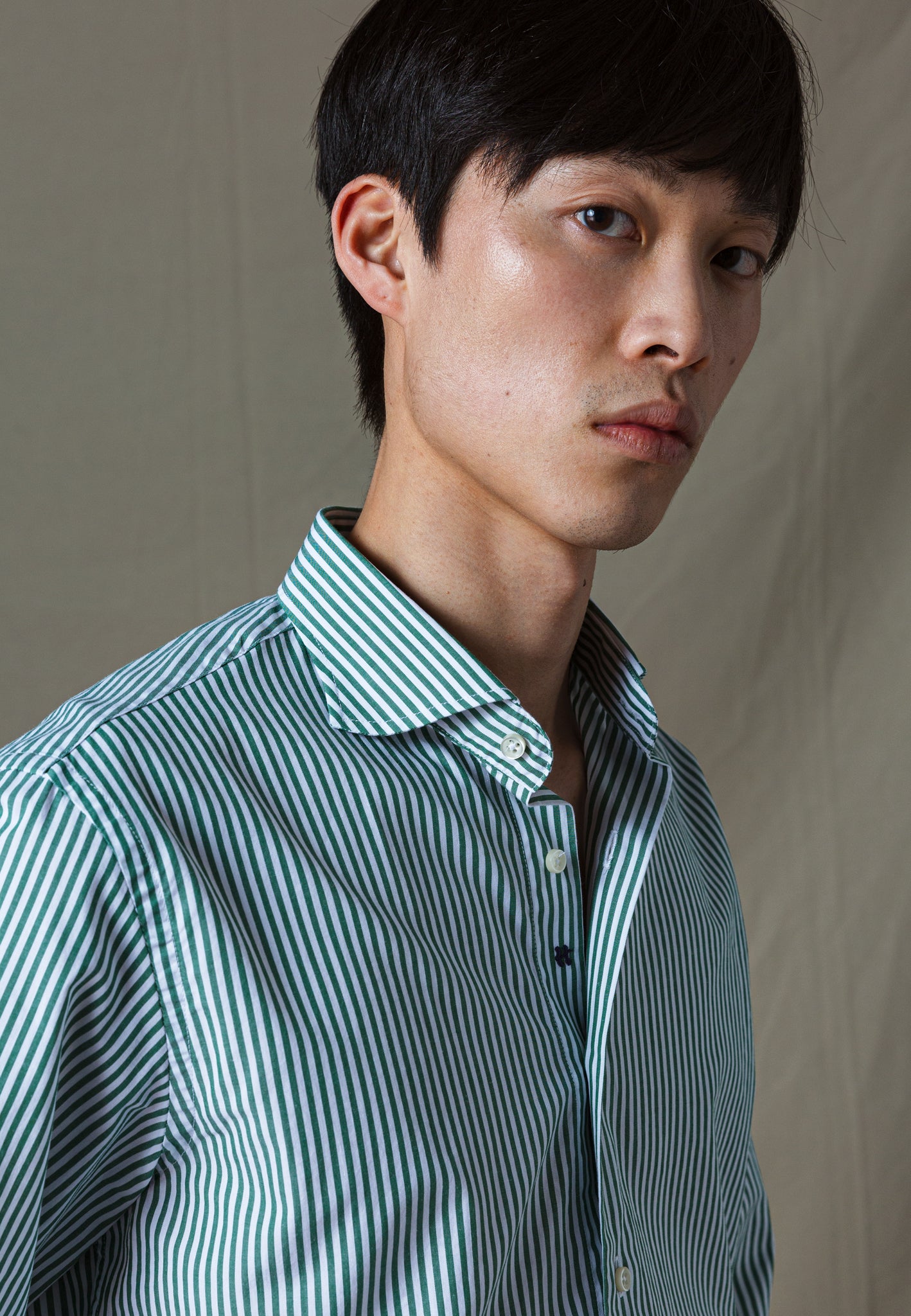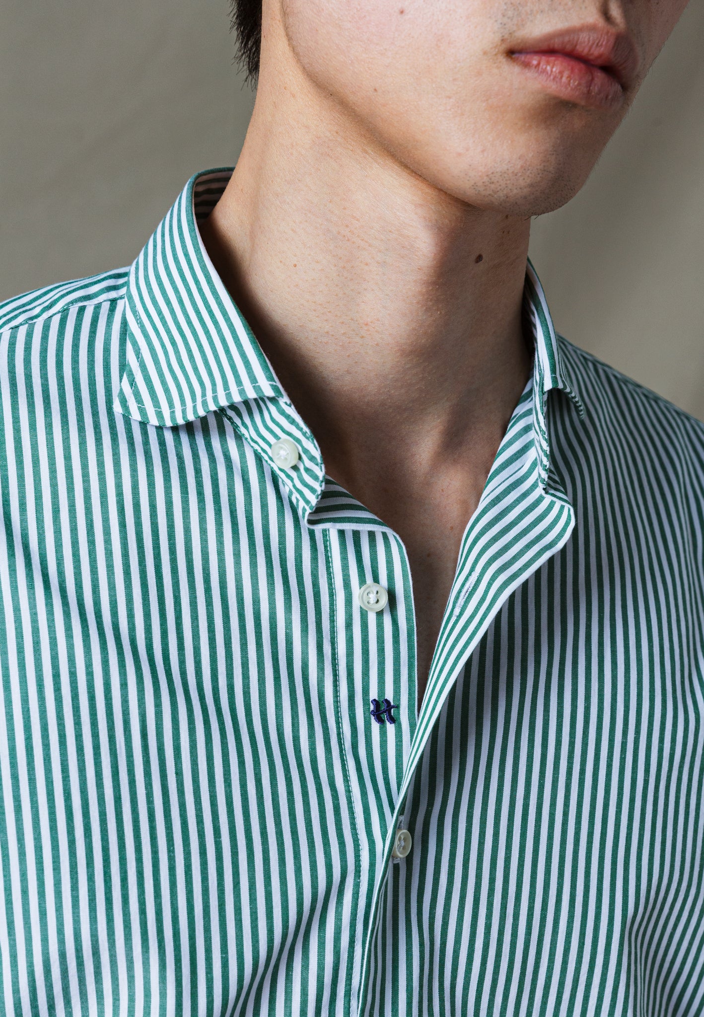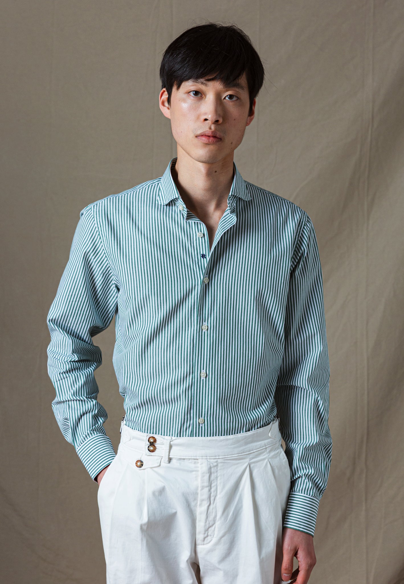CAMISA RAYAS ALGODÓN VERDE
