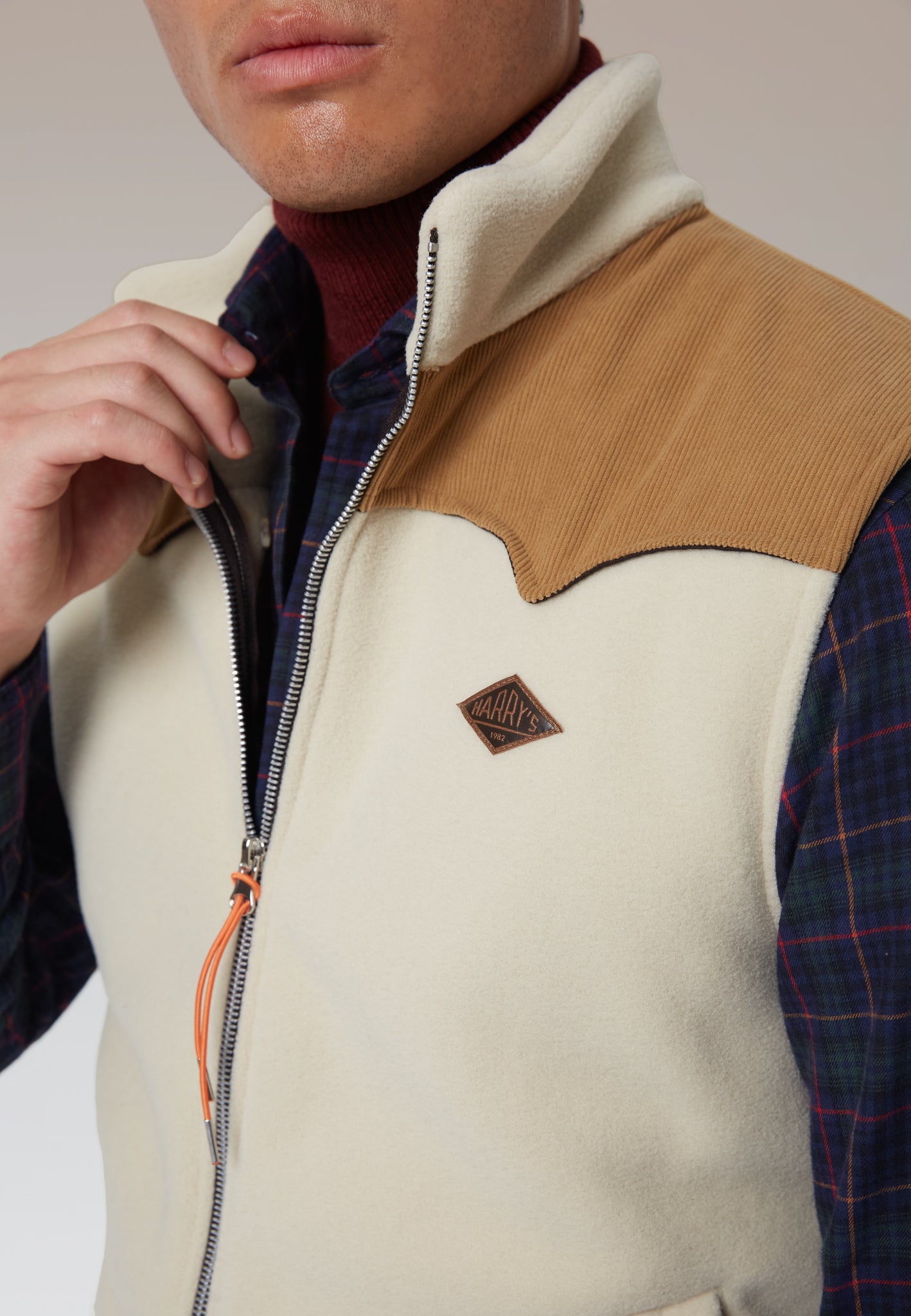 El chaleco polar beige de Harry's 1982 es una prenda versátil y práctica que no puede faltar en tu armario de invierno. Este chaleco, con parte superior en tejido de micropana, combina a la perfección estilo y funcionalidad, proporcionando un extra de calidez sin sacrificar la libertad de movimiento.