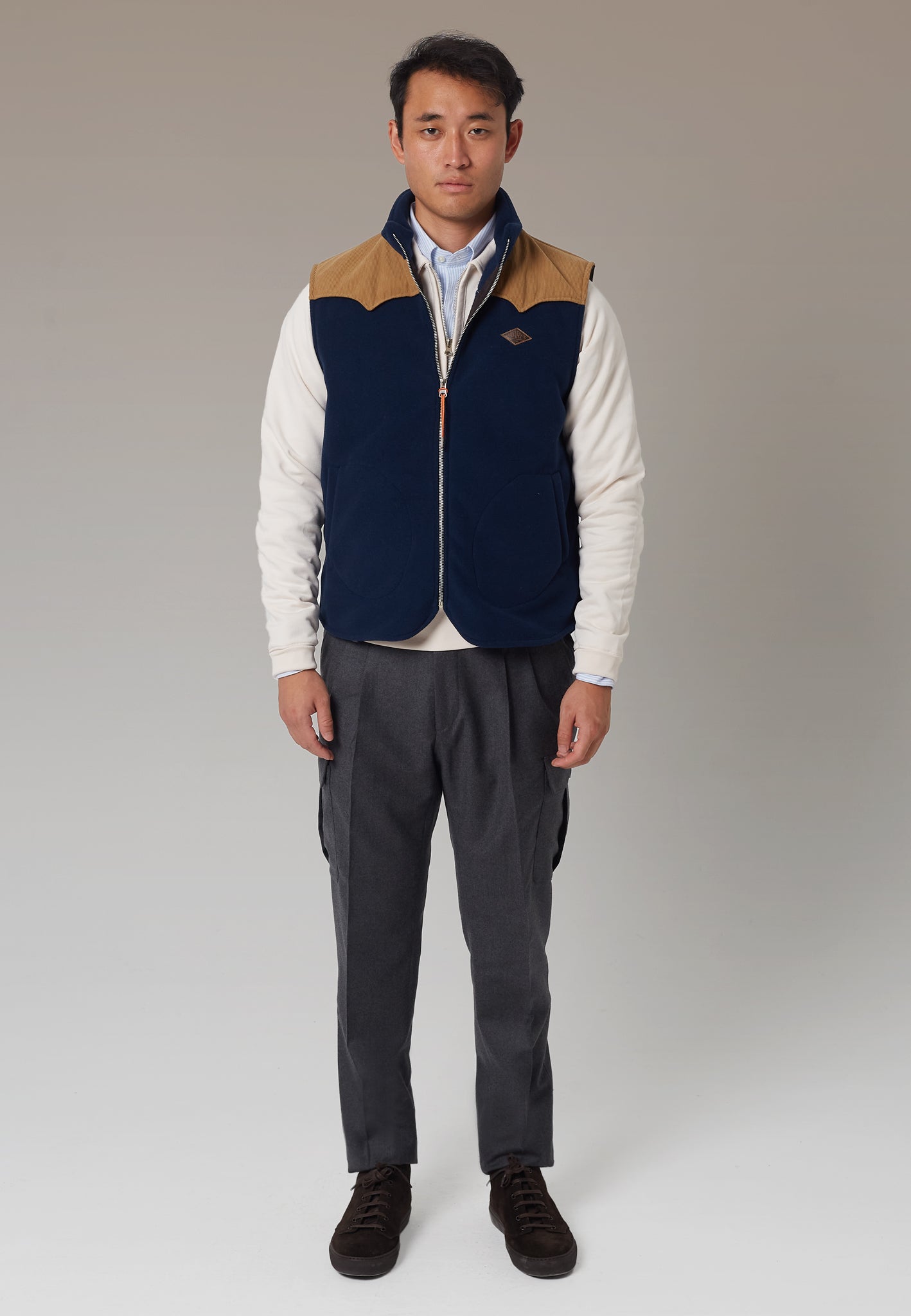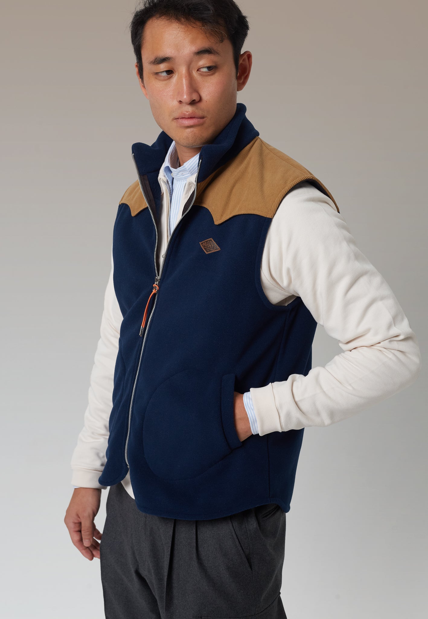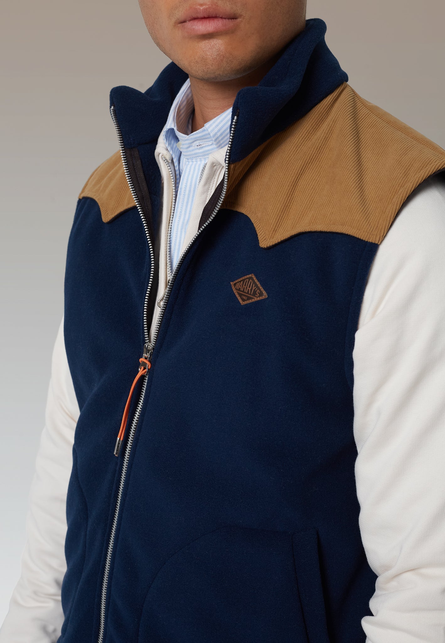 El chaleco polar marino de Harry's 1982 es una prenda esencial para tu armario de invierno. Diseñado con una parte superior en tejido de micropana, combina funcionalidad y estilo para ofrecerte la máxima comodidad en los días fríos.