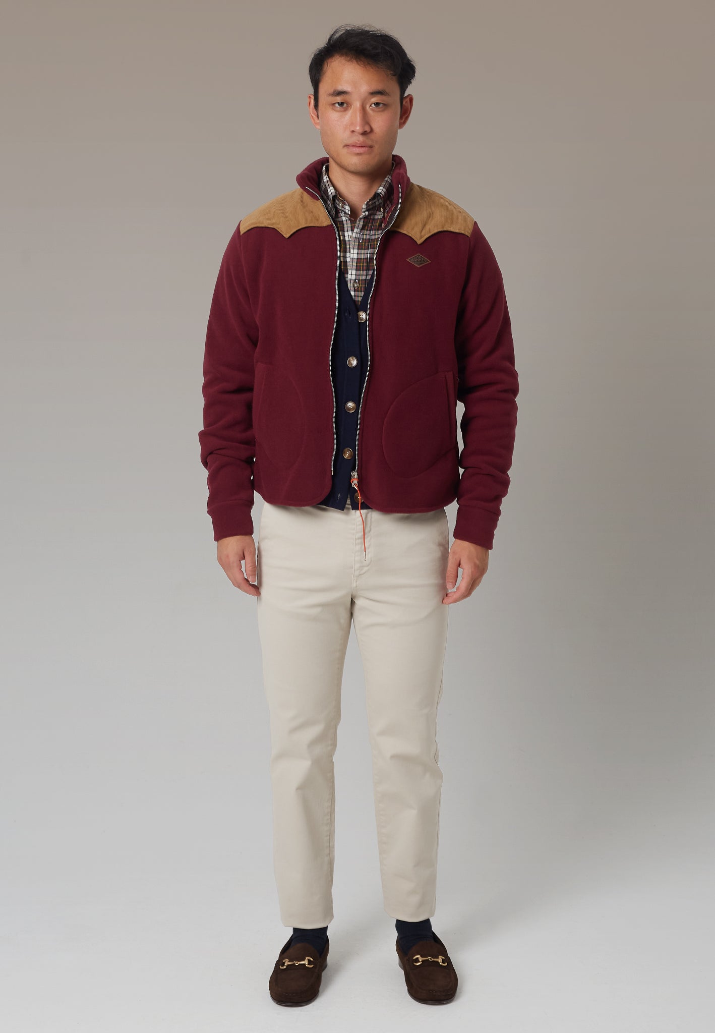 Este forro polar burdeos es la prenda perfecta para mantenerte abrigado y con estilo durante los días más fríos. Confeccionado con materiales de alta calidad, combina la suavidad del forro polar con el toque elegante de la micropana en la parte superior.
