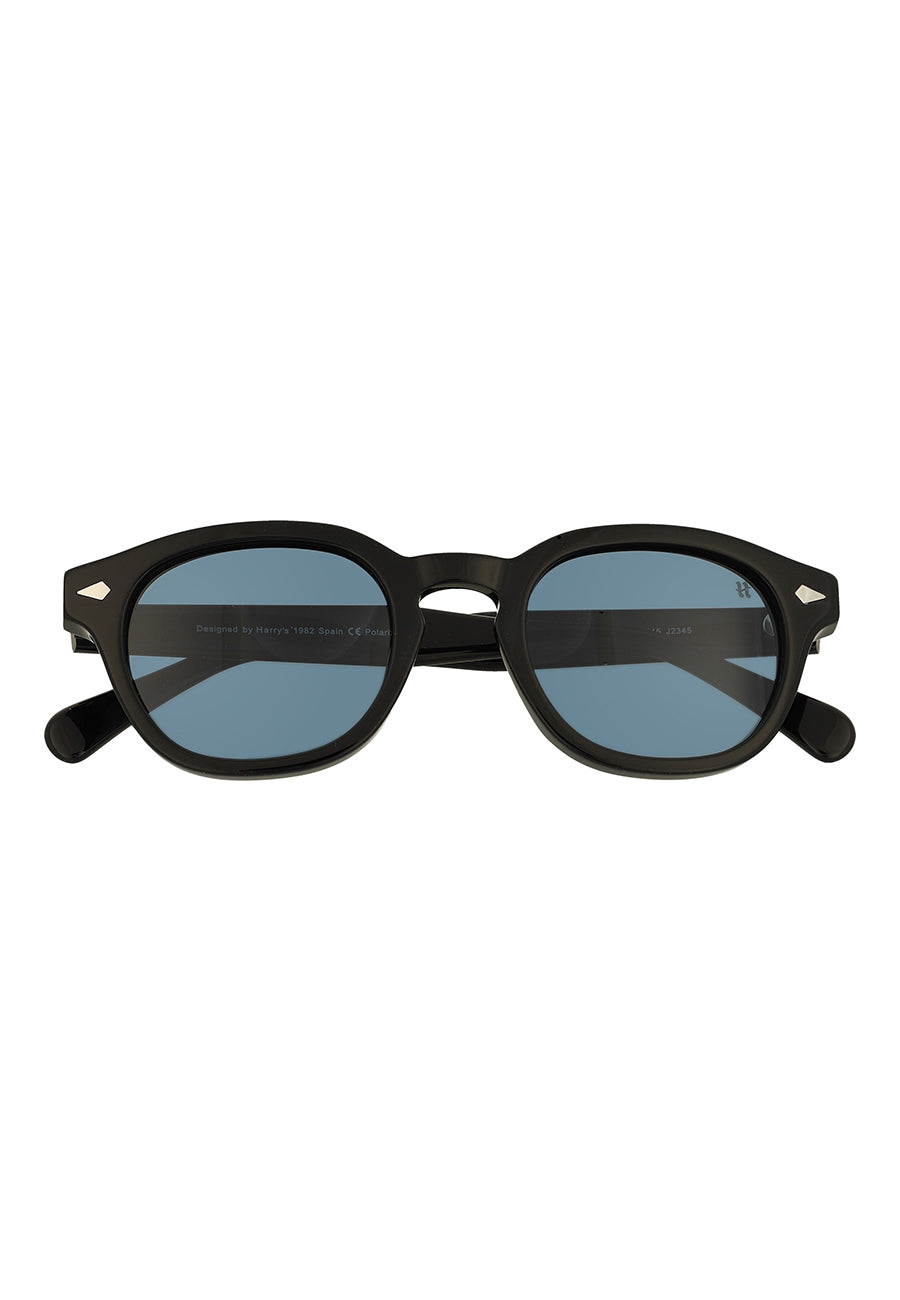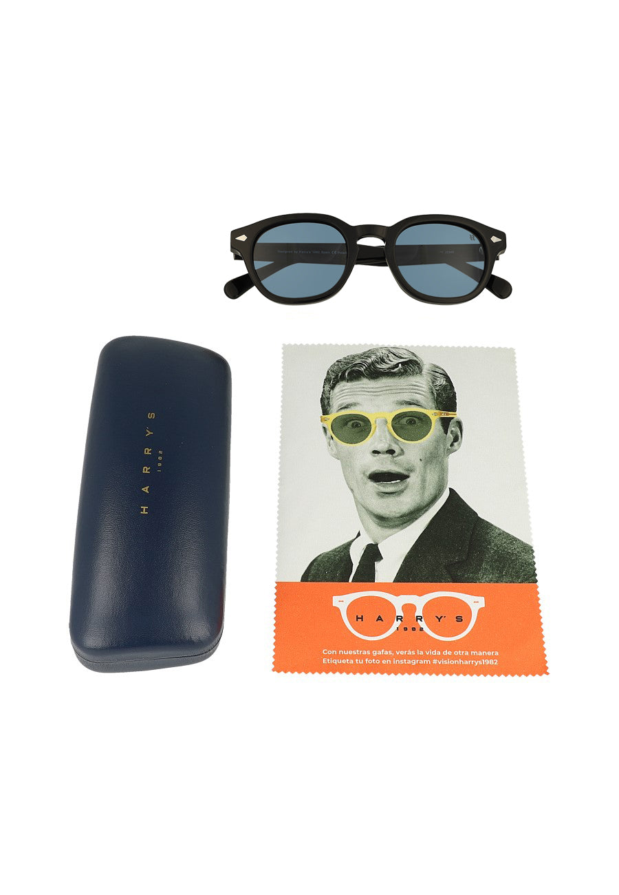 La montura negra combinada con lentes azules es una verdadera prenda imprescindible de la temporada