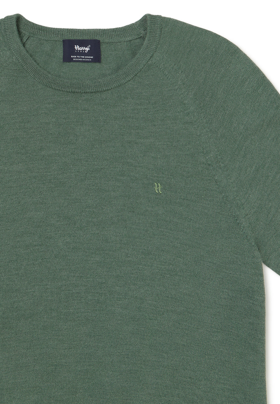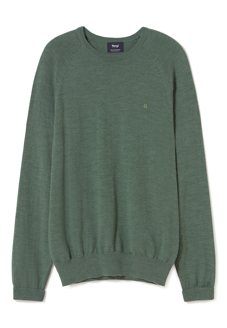 El tono verde añade frescura y elegancia a tu look, mientras el diseño de cuello redondo y mangas ranglan asegura comodidad y estilo. Las mangas ranglan permiten mayor libertad de movimiento, y la lana merino es suave, transpirable y naturalmente resistente a los olores. El bordado "h" en el pecho añade un toque distintivo de calidad y estilo.