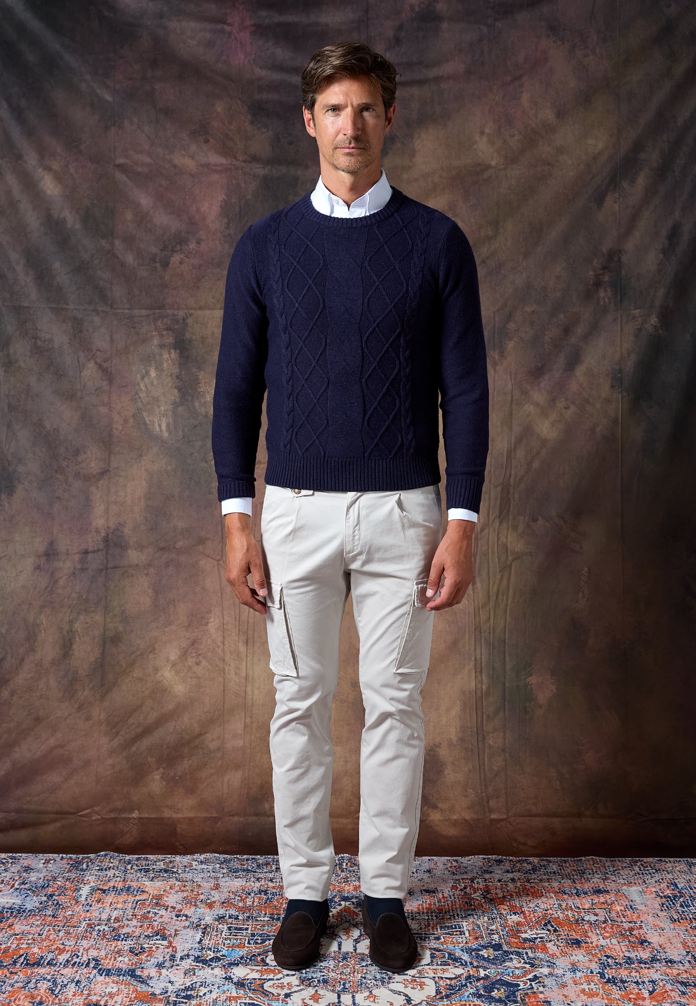 Un clásico actualizado que combina estilo y confort. Confeccionado en España con una mezcla de 70% acrílico y 30% lana, ofrece calidez, suavidad y resistencia para el día a día. Su tejido con trenzado en relieve en la parte delantera aporta textura y distinción, mientras que el bordado “H” al tono en el pecho añade un detalle sutil y elegante.