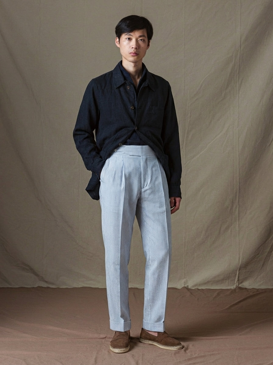 Confeccionado en Portugal bajo códigos de sastrería tradicional, este pantalón nace de una idea muy clara: ligereza sin perder estructura.