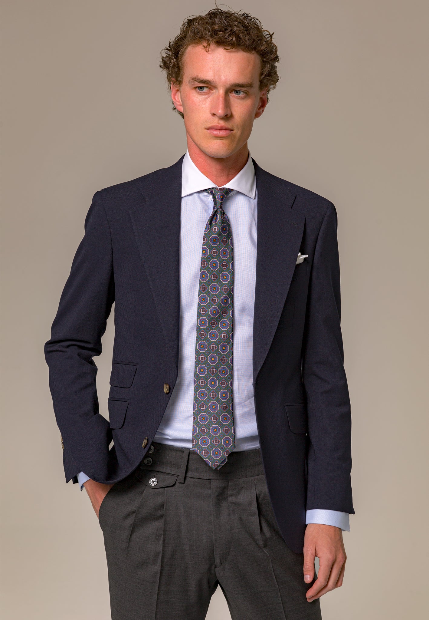 Pantalón confeccionado con tejido de fil a fil fabricado en 100% lana fria procedente de la prestigiosa casa italiana Marzotto Super 110´S.