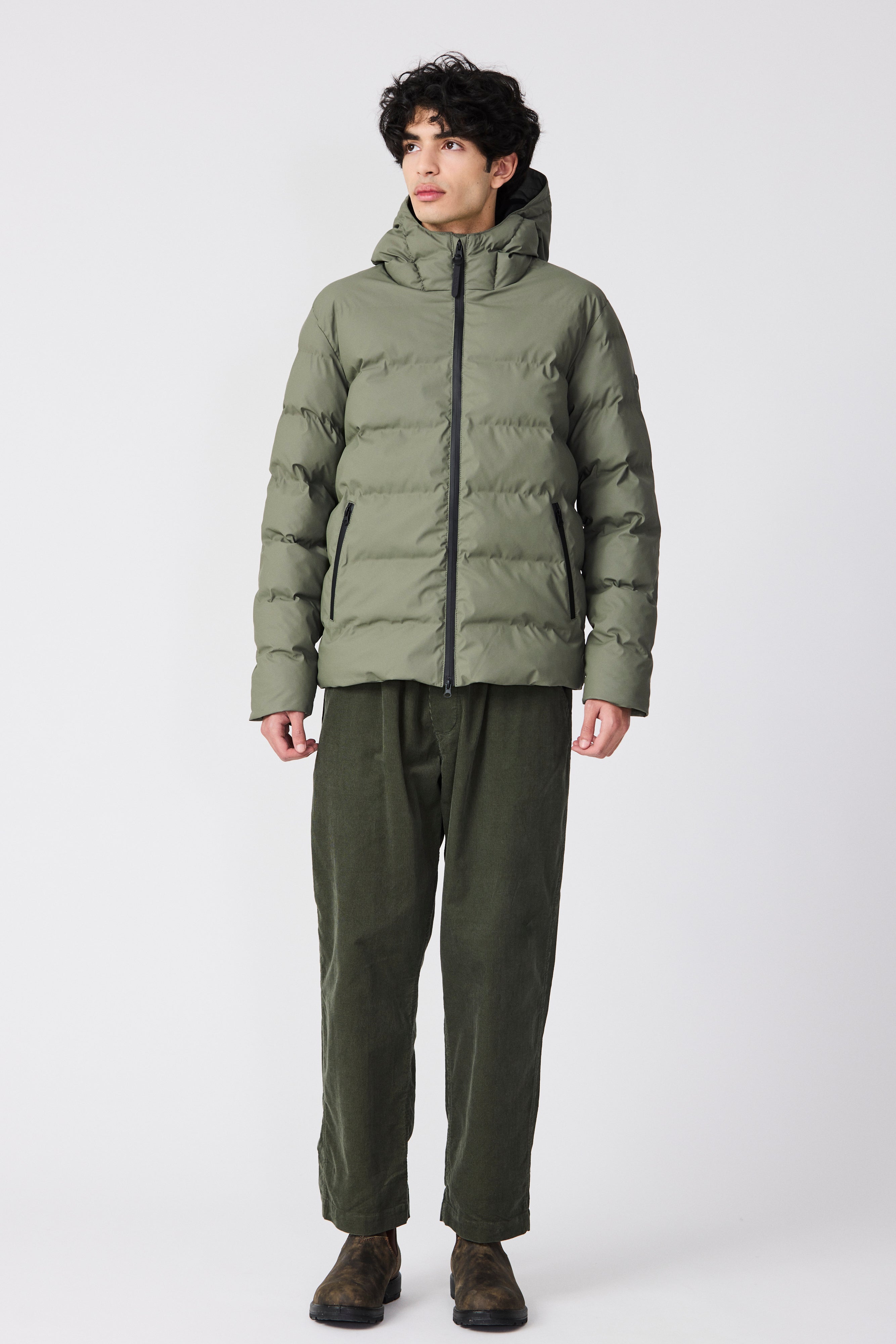Abrigo impermeable acolchado confeccionado pensando en la comodidad y la calidez, el acolchado Hrom está forrado con una capa aislante transpirable sin plumas y diseñado con cámaras sin costuras. Presenta un cierre con cremallera de doble tirador y bolsillos con cremallera impermeable en contraste. Una interpretación fresca y joven de la ropa deportiva metropolitana.