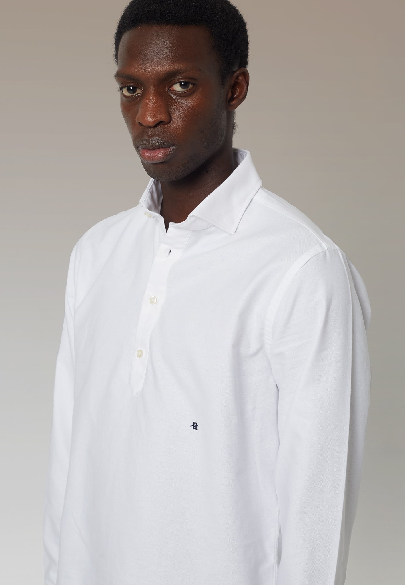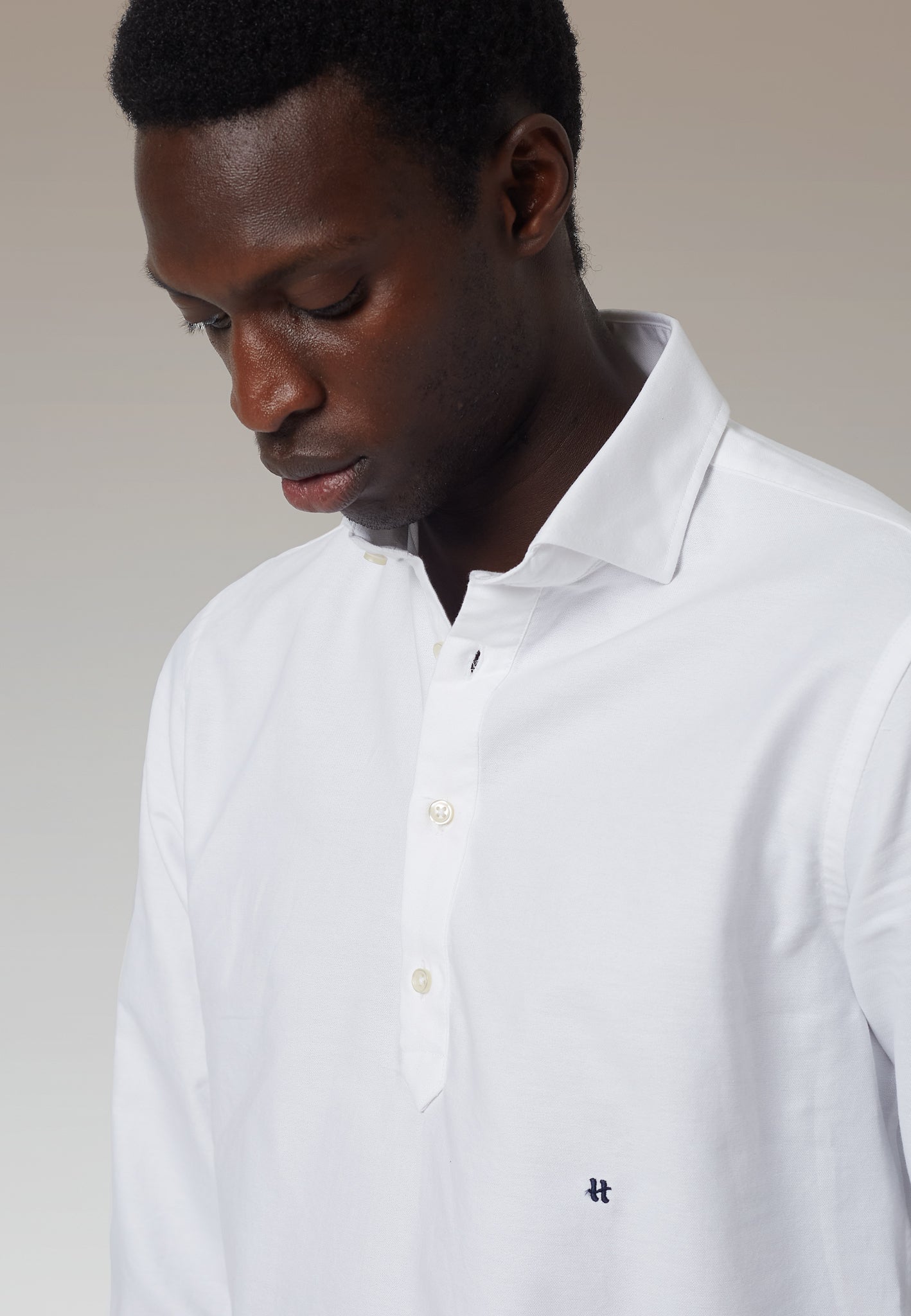 La polera básica de HARRY'S 1982 combina estilo y comodidad con un toque sport. Confeccionada en España con algodón italiano de alta calidad, su tejido oxford ofrece una textura suave y duradera. El diseño incluye un cuello con botones ocultos y puños sencillos, perfectos para un look relajado y elegante. El logo 'H' bordado en la parte inferior añade el toque distintivo de la marca.