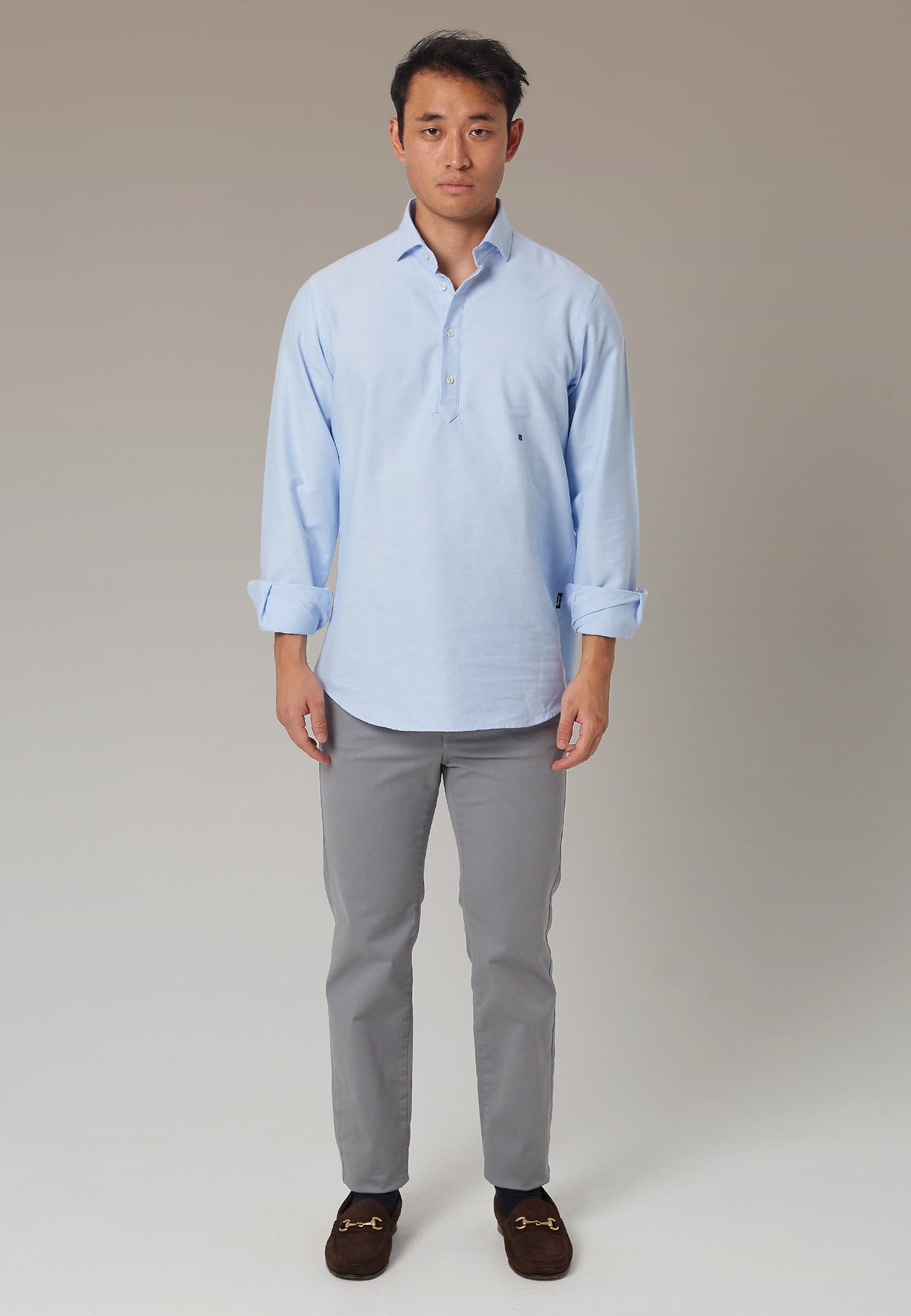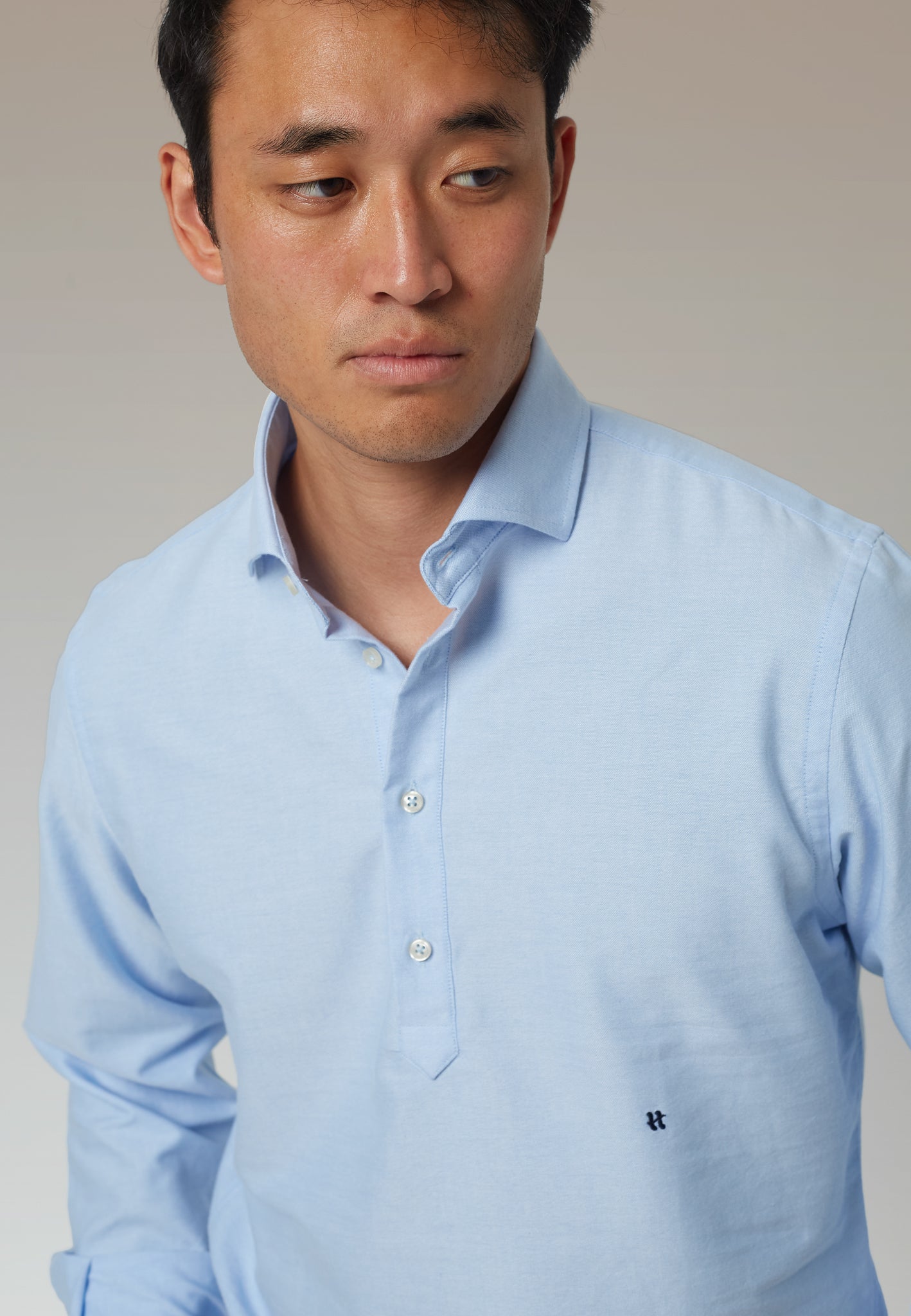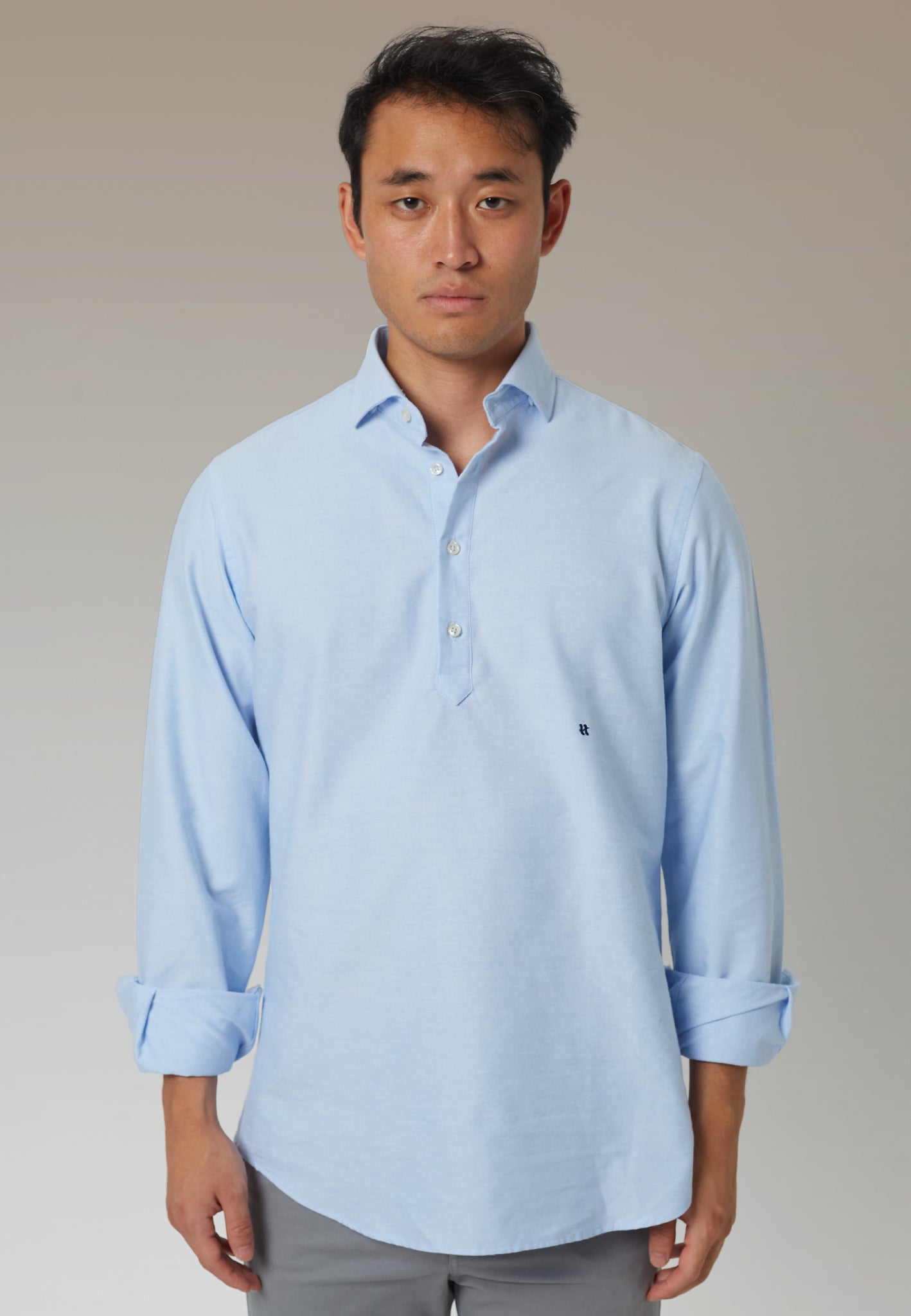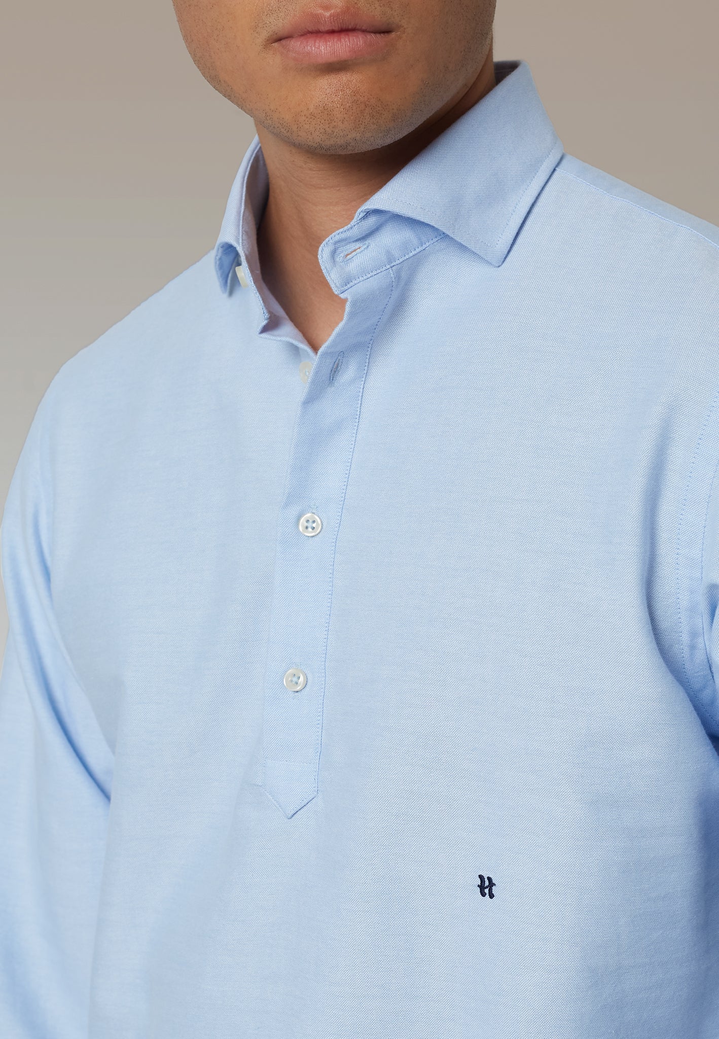Descubre la comodidad y el estilo de nuestra polera básica en tejido oxford, una prenda esencial en cualquier guardarropa masculino. Hecha en España con algodón italiano de primera calidad, esta polera ofrece un diseño refinado con cuello de botones ocultos y puños sencillos, rematada con el icónico logo 'H' bordado discretamente en la parte inferior.