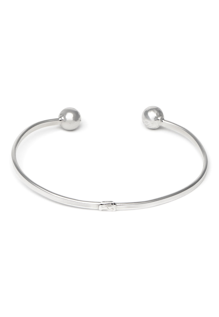 Pulsera dos bolas rígidas abierta con alambre y dos bolas en los extremos de la pulsera. Un pulsera unisex que podrás llevar a diario y combinar con todos tus looks.