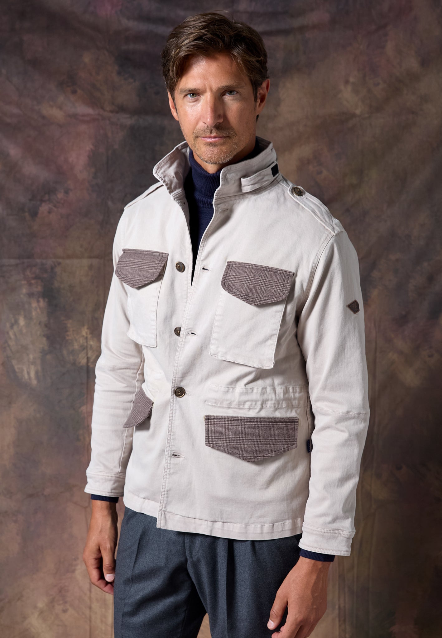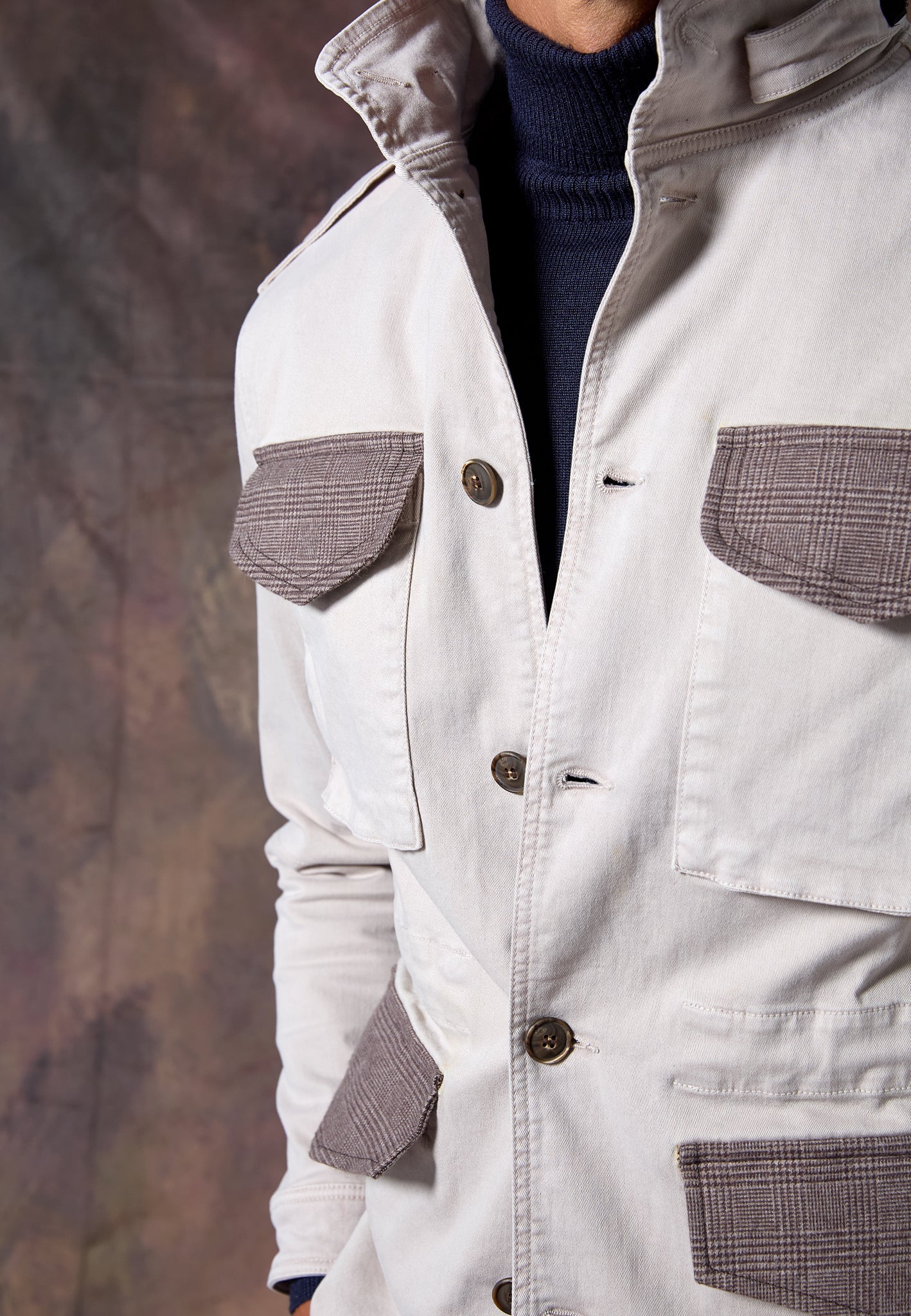 - Cuatro bolsillos frontales con tapeta tejido principe de gales