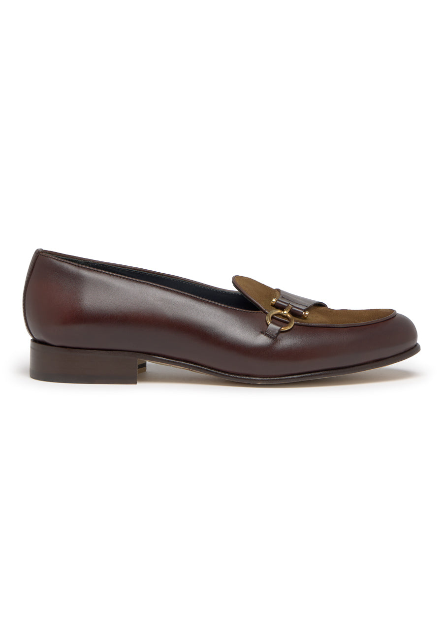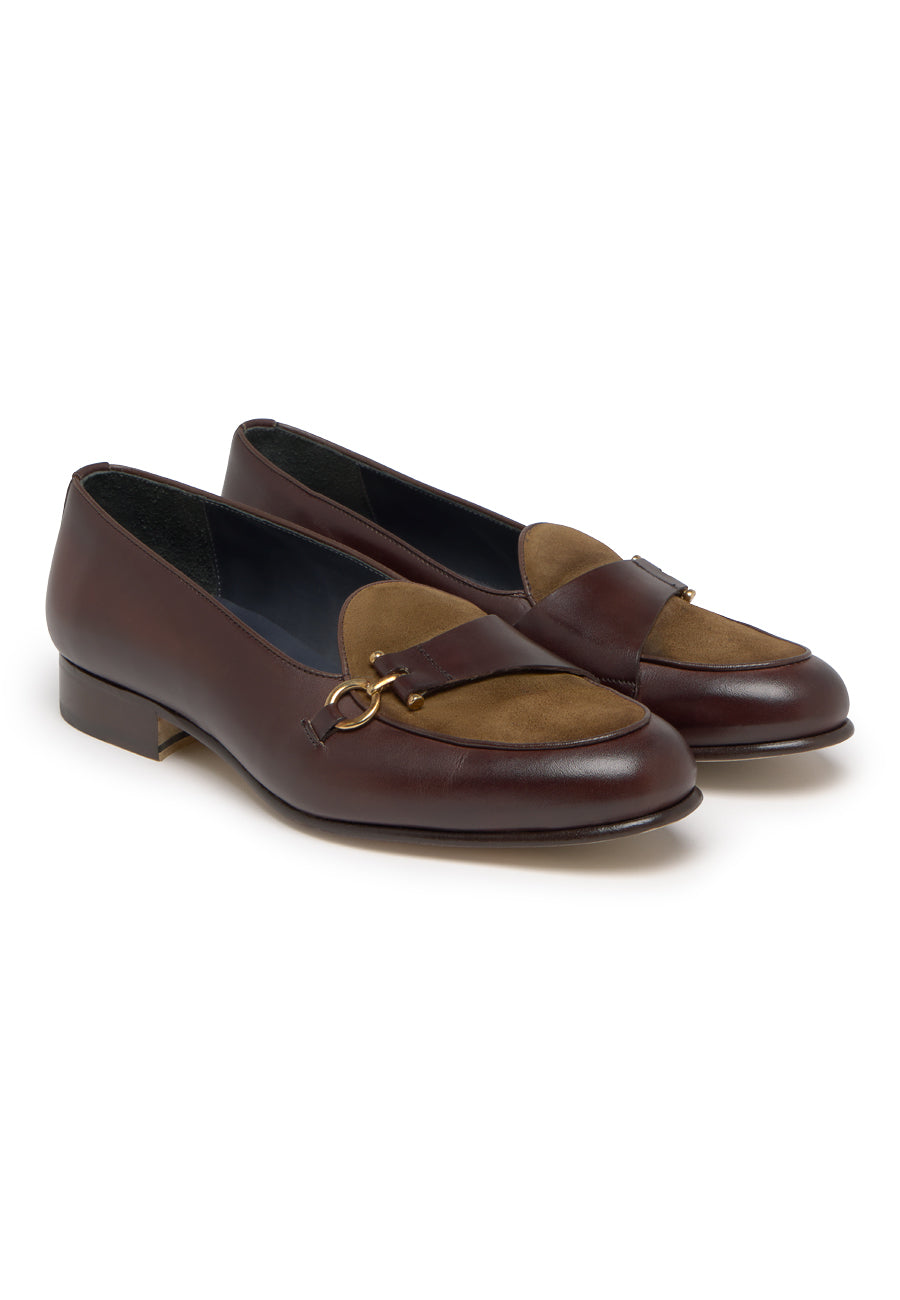 Confeccionado en una exquisita combinación de piel y ante italiano de la prestigiosa casa Sciarada —reconocida por su tradicional curtido de becerro y una excelencia artesanal sin concesiones—, este modelo representa la unión perfecta entre estética y savoir-faire.